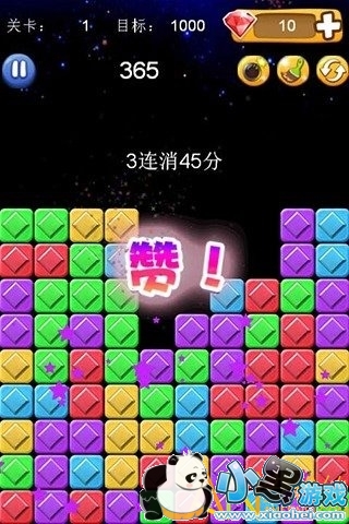 得到的奖励越多.消除方法是,点击颜色相同成块的方块或者星星,