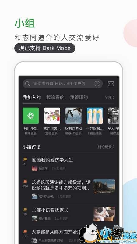 “小组”拥有难以置信的活力,帮助你与兴趣相投的人找到彼此,汇聚“遥远的相似性”。在这里,你将不断发现有趣的最新小组和时下热组,遇见与你一样特别的人。加入感兴趣的小组后,你可以随时与志同道合的人交流,共同讨论你们所爱好的人事物。