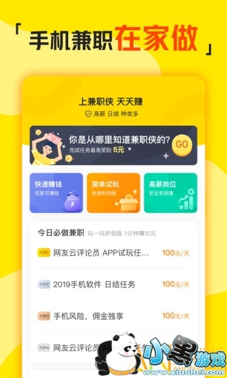 兼职侠手机兼职赚钱app是一款足不出户在家赚钱的手机兼职平台,安全正规的兼职你工作内容个,值得信赖额优质良心企业发布各个行业的兼职任务,用户可以在家利用空闲时间接单做任务赚钱,喜欢的朋友快来小黑手游网下载体验吧!