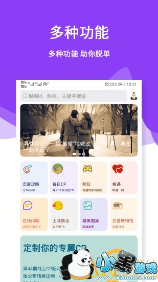 三天情侣处cp手机版app是一款最新手机社交软件,这款软件基于用户的年龄、兴趣爱好、地区等人物画像快速的匹配到符合自己要求的异性,为单身的朋友快速脱单,需要的朋友们快来小黑手游网下载吧!