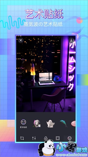 1、蒸汽波相机拥有数十款蒸汽波风格的模板,让用户坐上挂满霓虹灯的时光机,穿梭到八、九十年代;