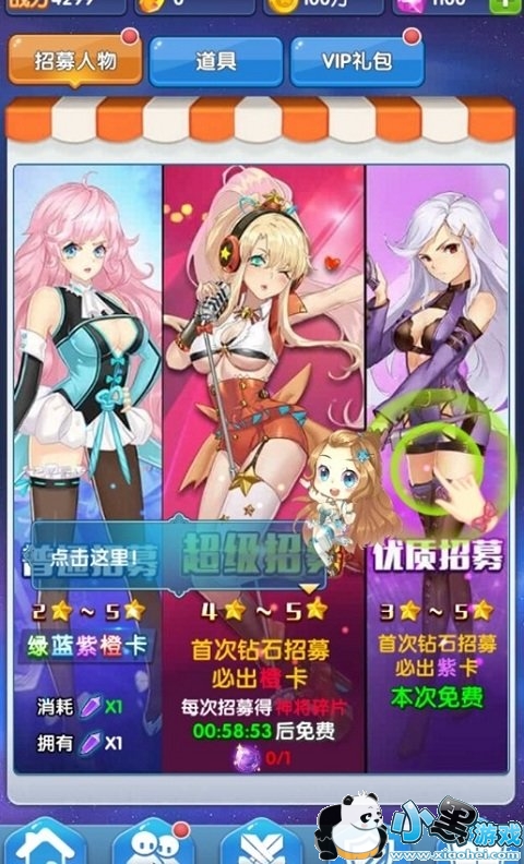 4、目前开放有上百名美少女卡牌, 每一个角色都有自己特有的形象和动作特效,甚至包括自有的声效。