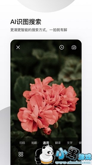 【识图辨物】自动扫描识别花草、宠物狗等,点击搜索框相机即可体验。