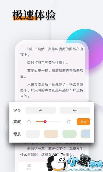 1.在线设置阅读背景,可以自行调节亮度。