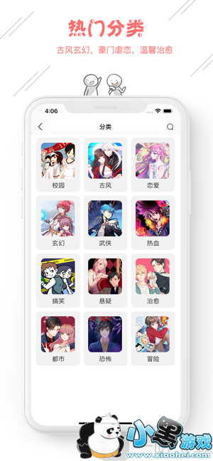 2.而且类型很全面,无论是浪漫,武术还是校园,只要看一下你想看的东西即可; 该软件易于操作,只要您相信要阅读的漫画的关键词,页面设计就会清晰明了。