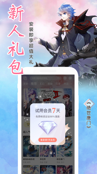 飒漫画下载app修改版,免费下载全新破译版本的,专为安卓系统客户打造出的全文免费阅读漫画的手机软件,永久性vip,是改动版本,可以免费看全新的全部漫画排行,飒漫画全文免费阅读所有,风起苍岚、斗罗大陆等漫画都能阅读文章哦,喜爱就赶紧来免费下载!