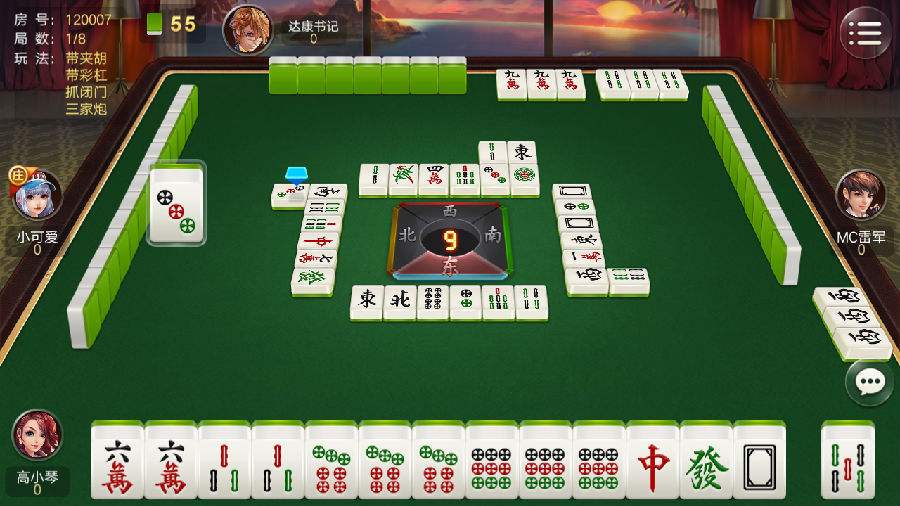 庄家:游戏中采用连庄方式,仅第一局为系统随机定庄,之后如庄家胡牌,则继续连庄;如非庄家胡牌,则庄家的下家上庄。