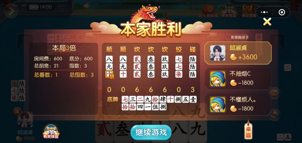 2、牢固树立15=21的胡牌理念。在没有名堂的情况下,要积极抢窖胡牌,往15胡兮上奔,别想21。因贪兮而打新张,往往促使别人进窖胡牌。