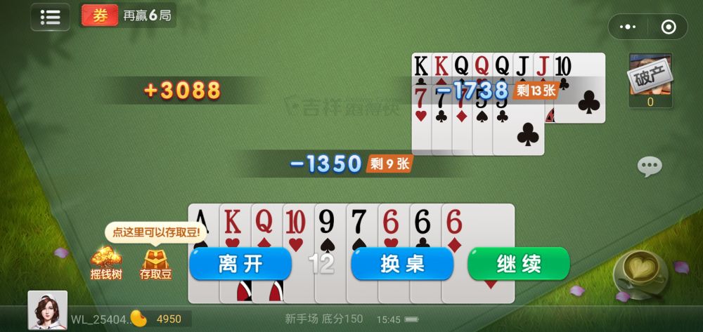3.第一局游戏由系统随机发牌,以后的每局游戏将由赢牌的玩家发牌。