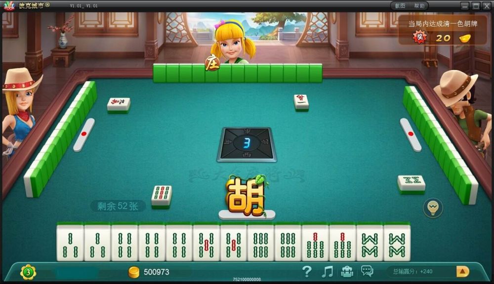 大众麻将:这是一款非常好玩的四人打麻将小游戏。游戏开始时,由一名玩家起庄。庄家的意义在于他一开始可以拿十四张牌,其它玩家只能取十三张牌。庄家如果胡牌, 则下一把可继续连庄,否则即由庄家的下家做庄。牌局通常在四位玩家轮流做过四次庄后结束