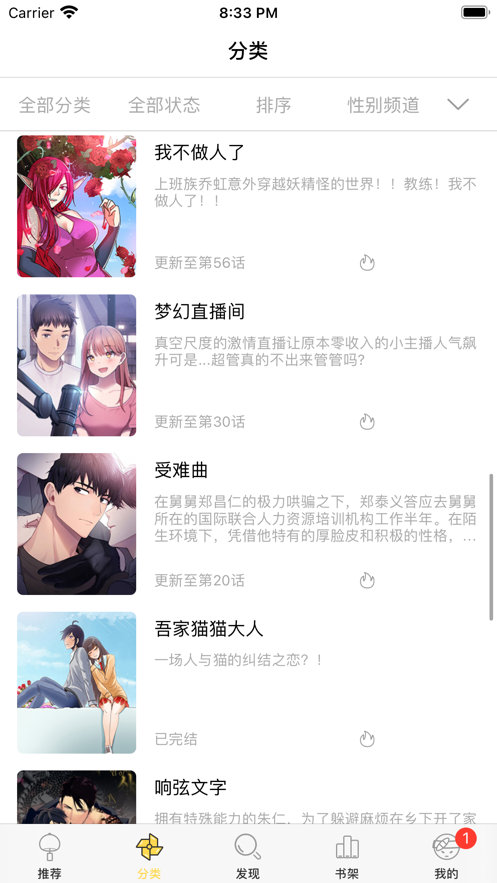 1.漫画的归类很确立,有十多种不一样种类的漫画,而且各种高品质的漫画资源都非常容易阅读文章。