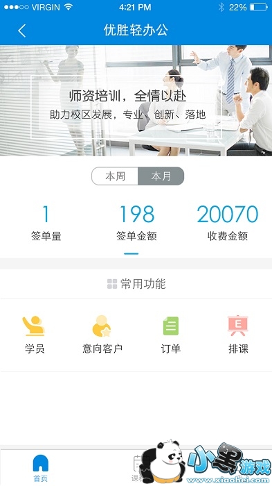 优胜轻办公app是一款为教育工作者们打造的系统管理软件,一个让老师来管理学生课程安排的软件,更好的拥有充足的时间来安排相关的人员来上课,实时查询上课时间和相关的课程进度,更好的来协同开展工作,喜欢的小伙伴快来安粉丝安卓网下载吧!