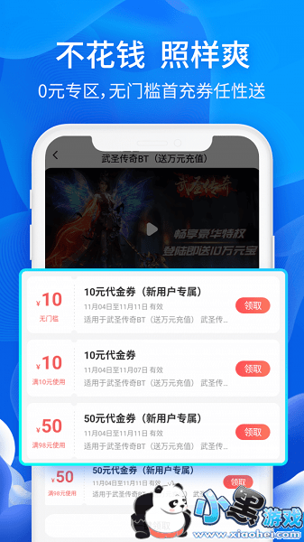 1、新人超值见面礼,免费送首充,代金券领到手软!更有畅玩省钱卡,每天领代金券;