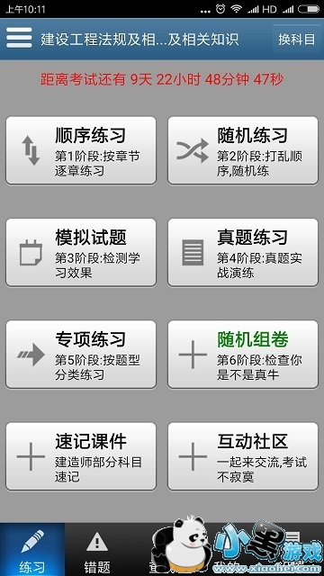随机练习则是根据知识点随机抽取题目,让考生在完成第一次知识点的学习后,按知识点打乱顺序随机抽取,以进一步强化知识点的学习。