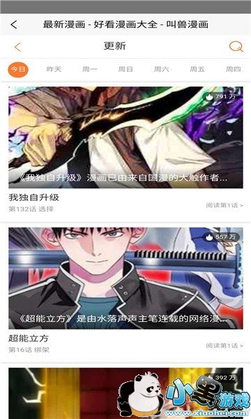叫兽漫画是一款非常优秀的漫画阅读。软件在这里面有大量的漫画可以进行阅读,所有的漫画都是经过正版授权的,软件可以通过用户所不同的喜好推荐更多同类型的漫画进行阅读,从此和漫荒说再见。