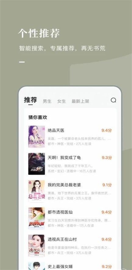 4.随意看原始小说,幻想,都市,浪漫,悬念和超自然,都可以选择!