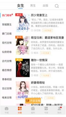 4.小说排行:高品质的排行已经等待您的体验,您可以快速查询各种流行小说的内容。