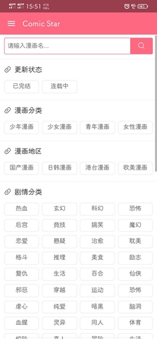 4、香港漫画、日漫、国产动漫、更新连载漫画、完成漫画等各种类型任你挑选。