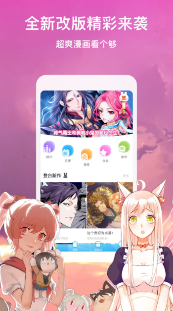 手机软件中为男女生产生了不一样的观漫体验馆,考虑了男女生的不一样追漫要求,顺从大伙儿的爱好,归类阅读。