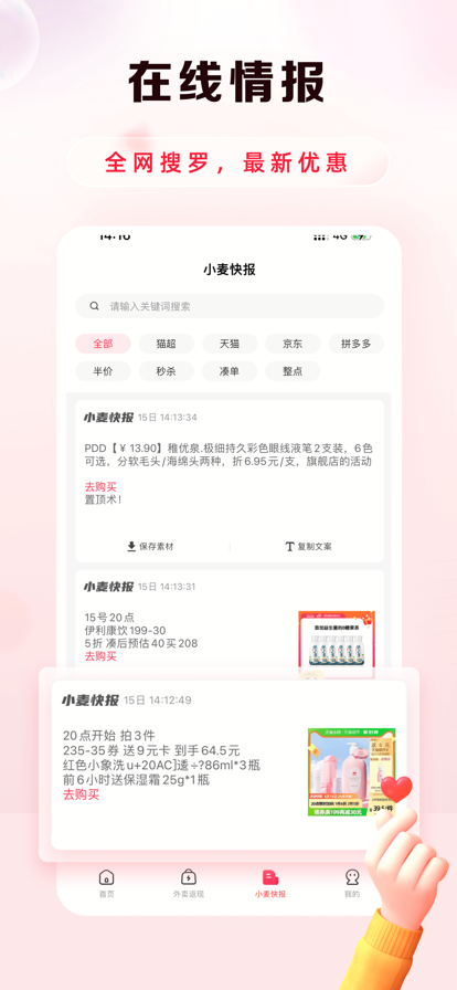 在这个软件当中,所涵盖的商品种类是非常全面的,每一个用户都可以根据自己的需求进行选择,而且还拥有着非常多的优惠活动,我们大家就可以及时的去参与这些活动,领取更多的优惠券,以最低的价格买到许多优质的商品,为我们大家带来一个非常好用的购物平台。