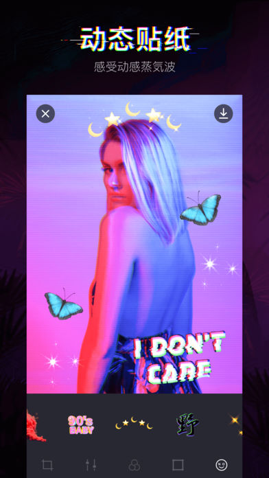 整个软件的操作非常的简便,每一个用户都可以快速的去拍照,而且拥有着非常多动态贴纸,让我们可以感受着一个与众不同的拍照体验,带给大家一个非常便捷的拍照软件,让我们可以更加轻松的去拍出许多好看的照片。