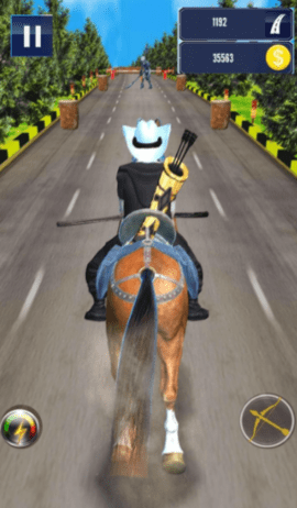 1、骑马射箭,西部牛仔的经典外形,跑酷收金币。
