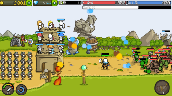 8、战斗技能使用:战斗时,点击城墙上的英雄,释放英雄技能。释放技能需要MP。同时,进入长期冷却。当有密集的怪物或老板时,最好使用该技能。