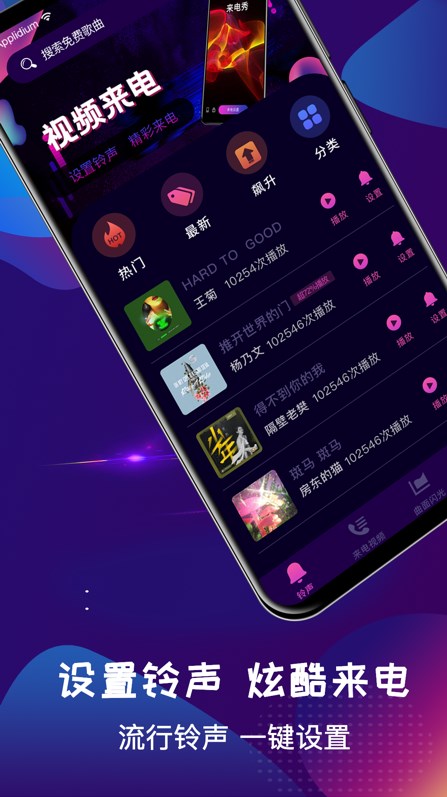 手机铃声彩铃大全app这是一个非常高质量和强大的手机铃声工具,各种流行和有趣的铃声覆盖,可以免费使用,很容易设置为己的手机铃声,让你的手机呼叫变得更酷,体验很好,这里可以让你的视频呼叫秀变得更精彩,像朋友下载使用!