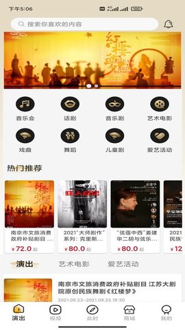 2.【演出购票】新剧快速推送,一键购票方便快捷;
