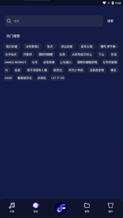 2、全面覆盖不同类型的歌曲,可以通过歌手名字或关键词进行搜索;