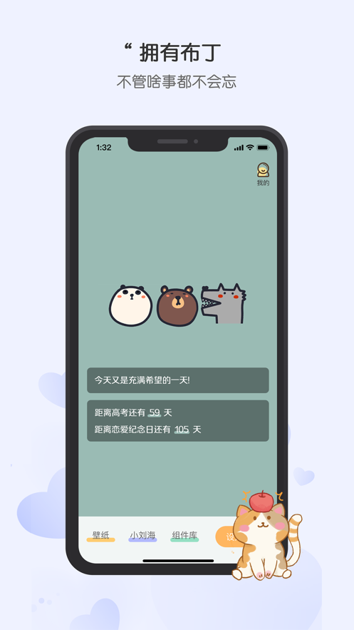 布丁锁屏: 是一款非常可爱治愈的锁屏壁纸更换软件,使用布丁锁屏你可以找到海量优质锁屏壁纸,还可以在你的锁屏上加入易考单词以及每日毒鸡汤功能,让你每天看着锁屏就能有新收获,还有着加入注意事项的贴心功能,提醒你不忘记重要事件,赶快来下载布丁锁屏安卓app吧。