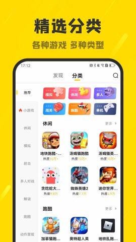 2、平台上的游戏种类非常丰富,都非常简单,只需要通过平台就可以试玩,打开手机就可以直接在线玩;