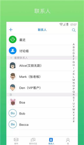 2、通讯录——管理联系人和联系人群组,并以群组的方式向联系人群组发送邮件;