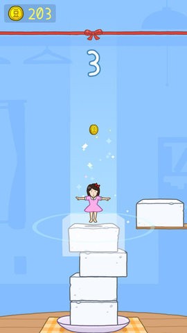 1、轻松简单的操作,控制小女孩跳上左右飞来的豆腐块,感受一点刺激;