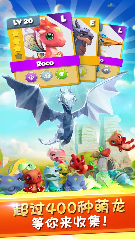 4、带领你的龙队称霸海岛,参与更多战斗,扩大可爱龙的收藏和提升技能,努力向更高的联赛冲刺;