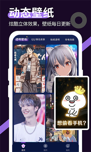 1、【海量资源】精挑细选娱乐明星、漫画、影视书籍、动物萌宠、热门游戏等多种静态动态壁纸资源;