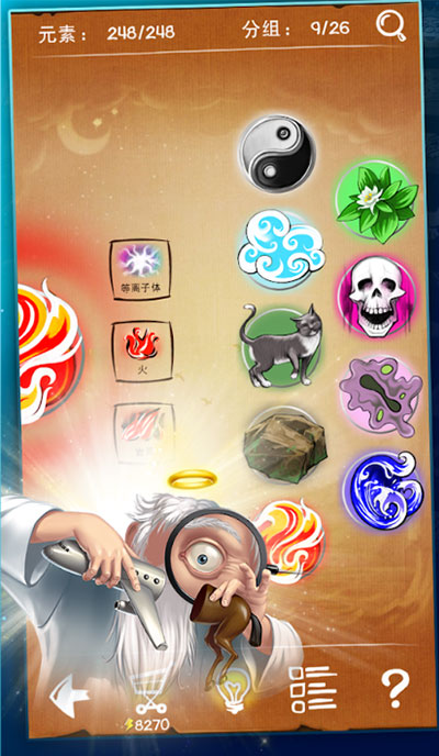 涂鸦上帝游戏一开始只有四个元素,玩家要善用各种方式合成,走向创造300个以上的元素。之后元素种类会增加,游戏难度也会增加。玩家不必墨守成规,可以充分发挥想象力进行合成。如果他们想不出一个合成方案,就去查百科全书。