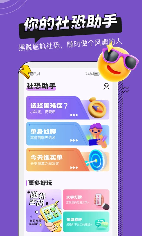 2、社交恐惧症助手还包括其他一些实用功能,如单身囧聊、选择困难症等;