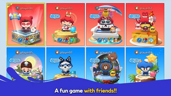1、3D呈现的超萌角色,操作这些可爱迷人的爆破小伙伴,和你的对手来一场华丽的水球爆破秀吧;
