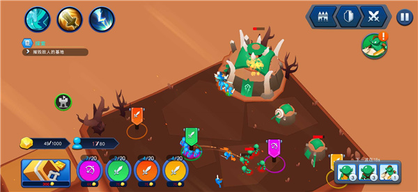 4、玩家需要不断的造兵,攻击敌人的城堡,即使推掉也要赢。