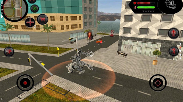 4、这是一款3D游戏,拥有巨大的真实世界视野。该机器人可以变形为3D真实鲨鱼,可以在水中自由潜行,也可以变成人形,在模拟的真实城市中自由行走。