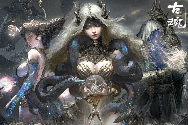 古魂的故事背景基于魂刃IP系列,是魂刃1代龙城的正版续作。由于时间洪流的冲刷,世界树产生了不同的演算结果,使世界发生了巨大的变化,产生了无数相似但不同的平行世界。三个被选中的继承者(海拉、以斯帖、克奥斯)从他们支持的根源出发,进入虚拟记忆世界,来到了破碎巨人神库,见到了管理者奥德姆。他们需要用英雄的灵魂来修复巨神库,然后在虚拟记忆时代(诸神黄昏前5-10年)、古黄时代(诸神黄昏前1000年)的18块不朽的石头碎片,镶嵌在至高无上的王座上,就能完成使命。