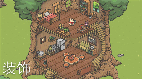4、为这只可爱的月兔建一所新房子。你可以装饰室内,收集各种家具和装饰品。
