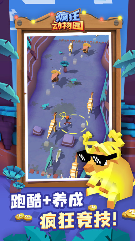 疯狂动物园集3D像素、急速跑酷和模拟养成为一体的休闲小游戏。在游戏中你将扮演一名富有冒险精神的绝世牛仔。在高速移动的情况下与各种动物一较高下。你要尽可能多的套住动物,将它们统统带回飞船上的空中动物园中饲养;并进行园区升级,以便迎来世界各地的游客光临。