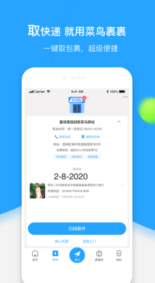 菜鸟驿站:网购包裹免费代收,包裹全程跟踪、到站点自动提醒,取货操作简便;同时驿站还提供便捷的寄件服务。