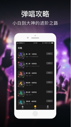 1、你可以选择你喜欢的歌曲,可以有非常专业的伴奏,你可以选择不同的乐器进行弹唱;