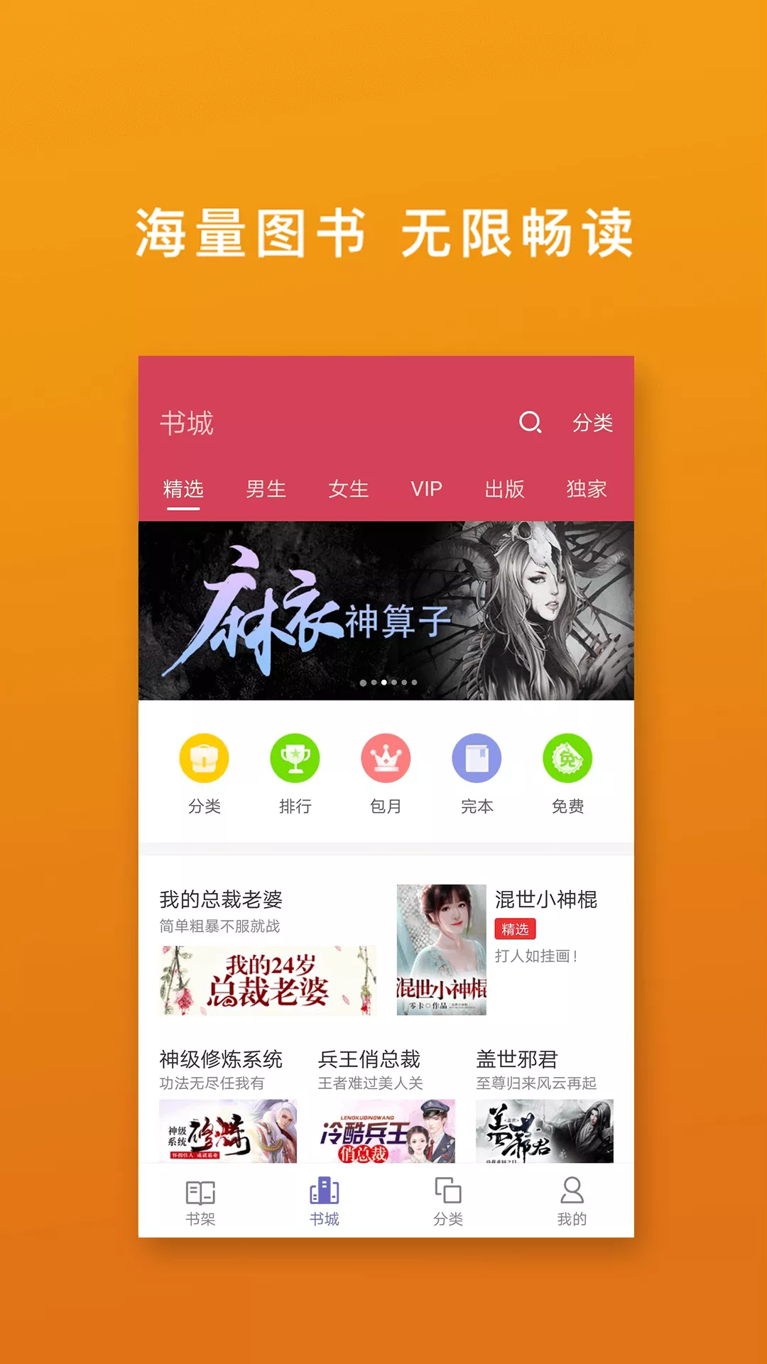 如你所想,给你所看,百万部玄幻、武侠、言情、都市、穿越、宫斗、历史、军事、热门、网络、经典小说样样俱全任你阅读,小说更新实时提醒,追书也是件幸福事。