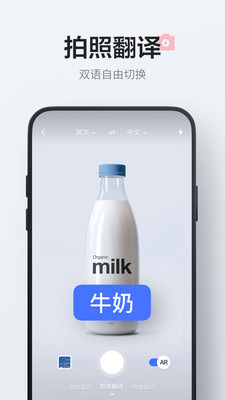 拍照翻译:强大的OCR摄像头取词和拍照翻译功能,一拍即译,无需手动输入便可快速翻译英语、日语等多种语言,满足出国翻译、旅行翻译、旅游购物翻译、英语学习翻译等需求。