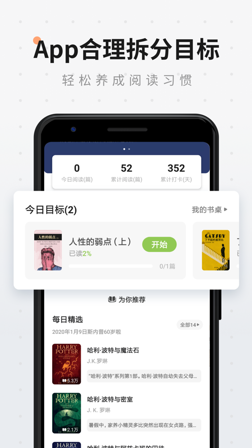 2、我们还会协助你制定短文计划,约束自己在一个月、两个月内一天不落地进行阅读。