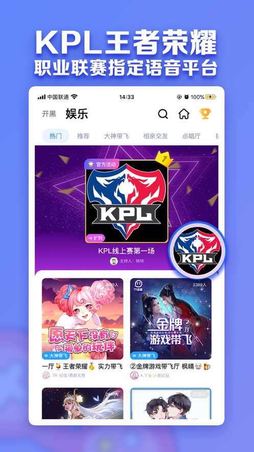 不用跳出游戏就能联系好友自由沟通,业界最强实时语音技术,高音质无损耗,第一时间适配热门游戏和机型,不卡不掉不延迟,只为帮你获得更好的游戏体验